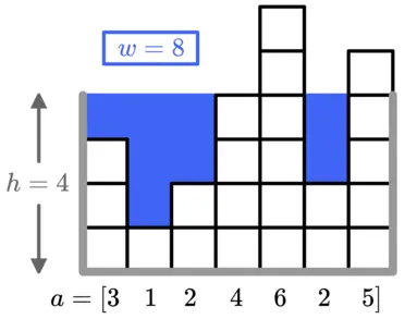 MrTee muốn xây một bể cá để lấy thịt chiêu đãi học sinh. Sẵn tiện được cho ~1~ rặng san hô gồm ~N~ cột, mỗi cột có độ cao là ~a_{i}~, MrTee muốn xây bể cá như sau: