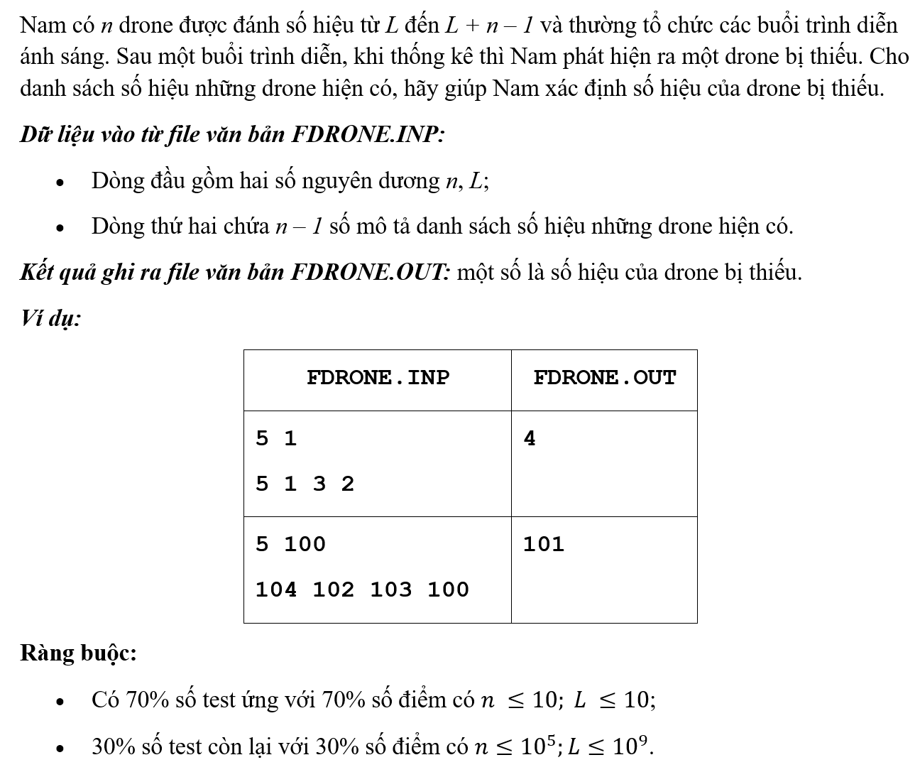 - Subtask 2 (60% số điểm): Không có ràng buộc gì thêm.